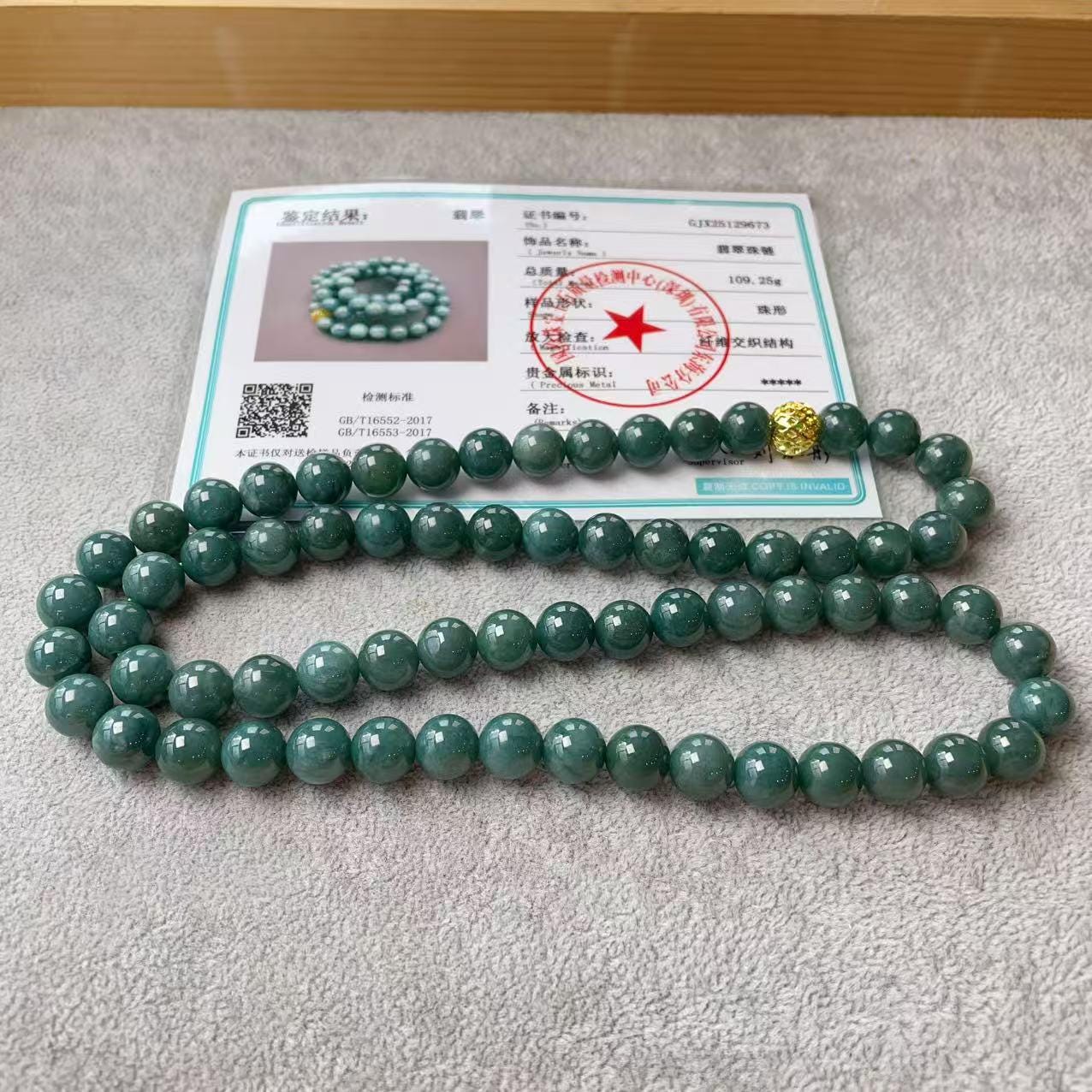 Certified 10mm Blue Jadeite Beaded Necklace, Undyed Natural Jadeite, 25" jade beaded chain, Real Jade Chain, Gift for Everyone