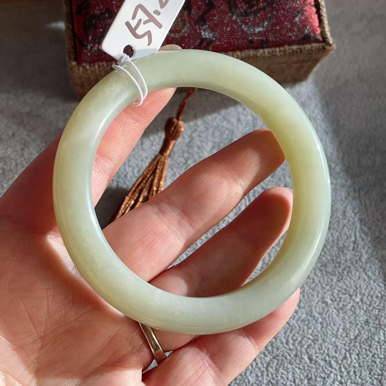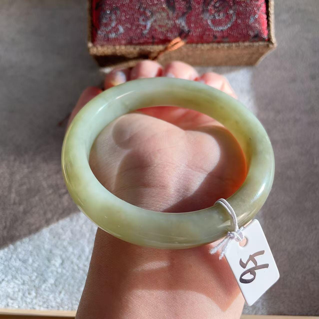 🎈This is a natural jade bangle with no dyeing or treatment. Natural texture lines and patterns are normal and part of the stone’s character, so it cannot be perfectly flawless.