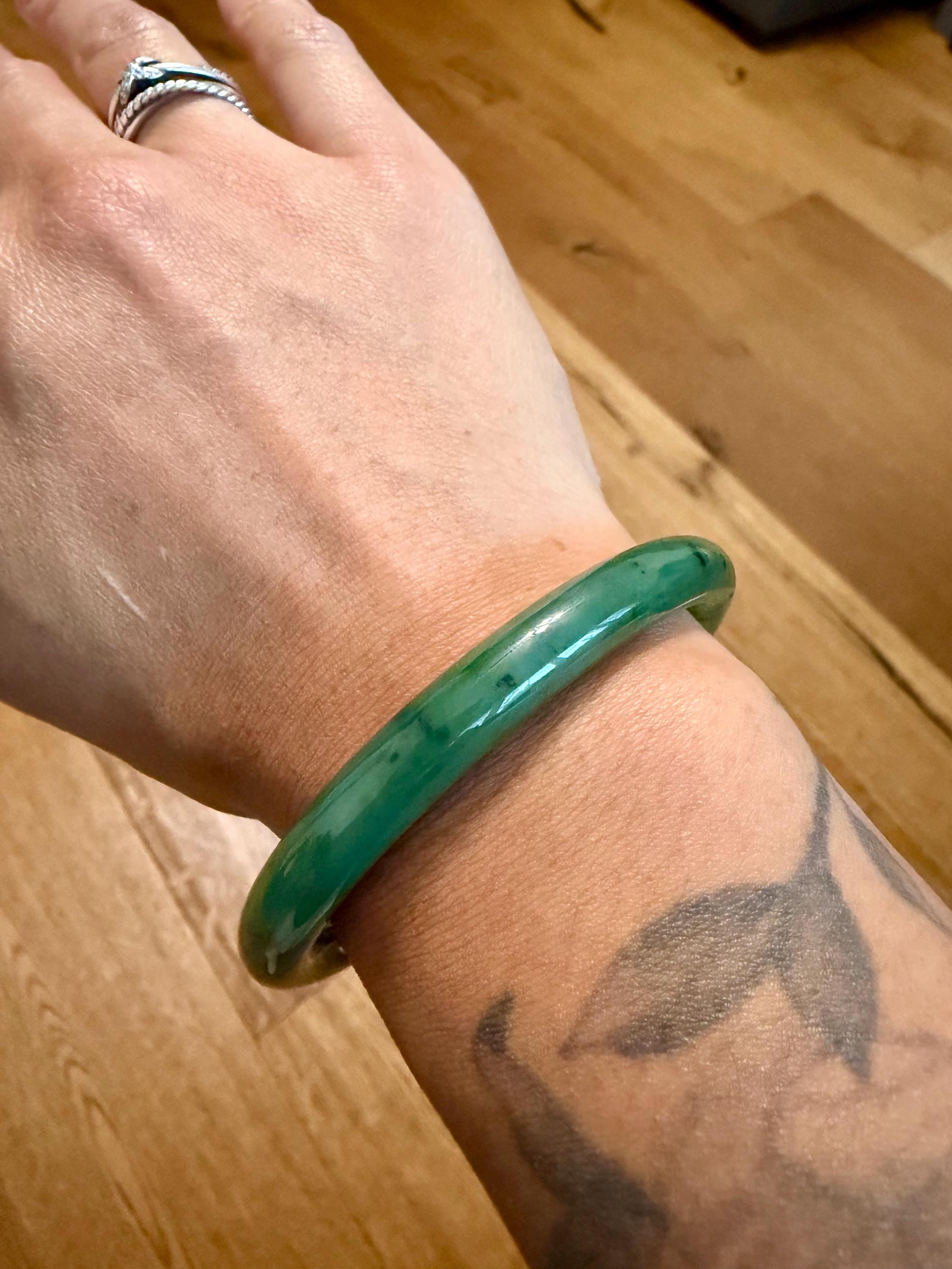 Bring timeless elegance and nature’s energy to your wrist with this stunning natural jade bangle.