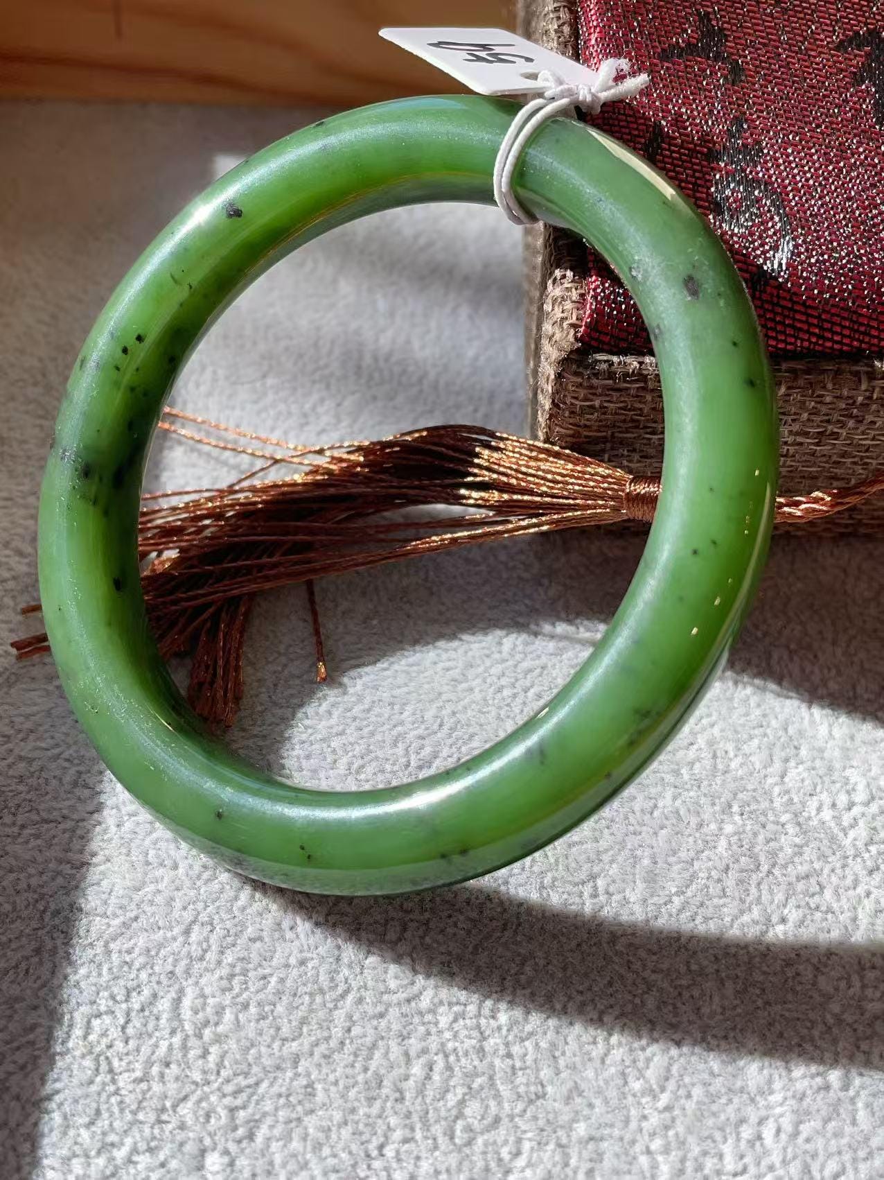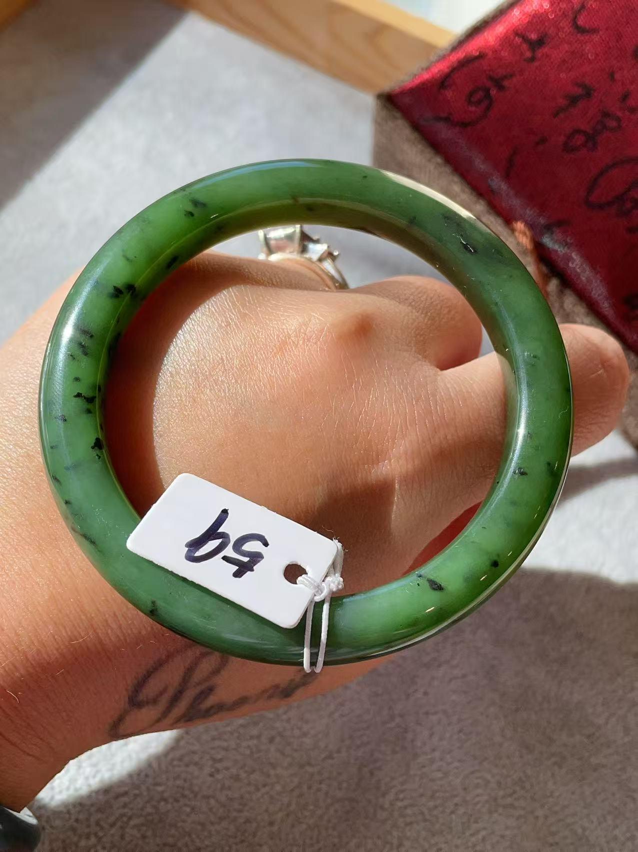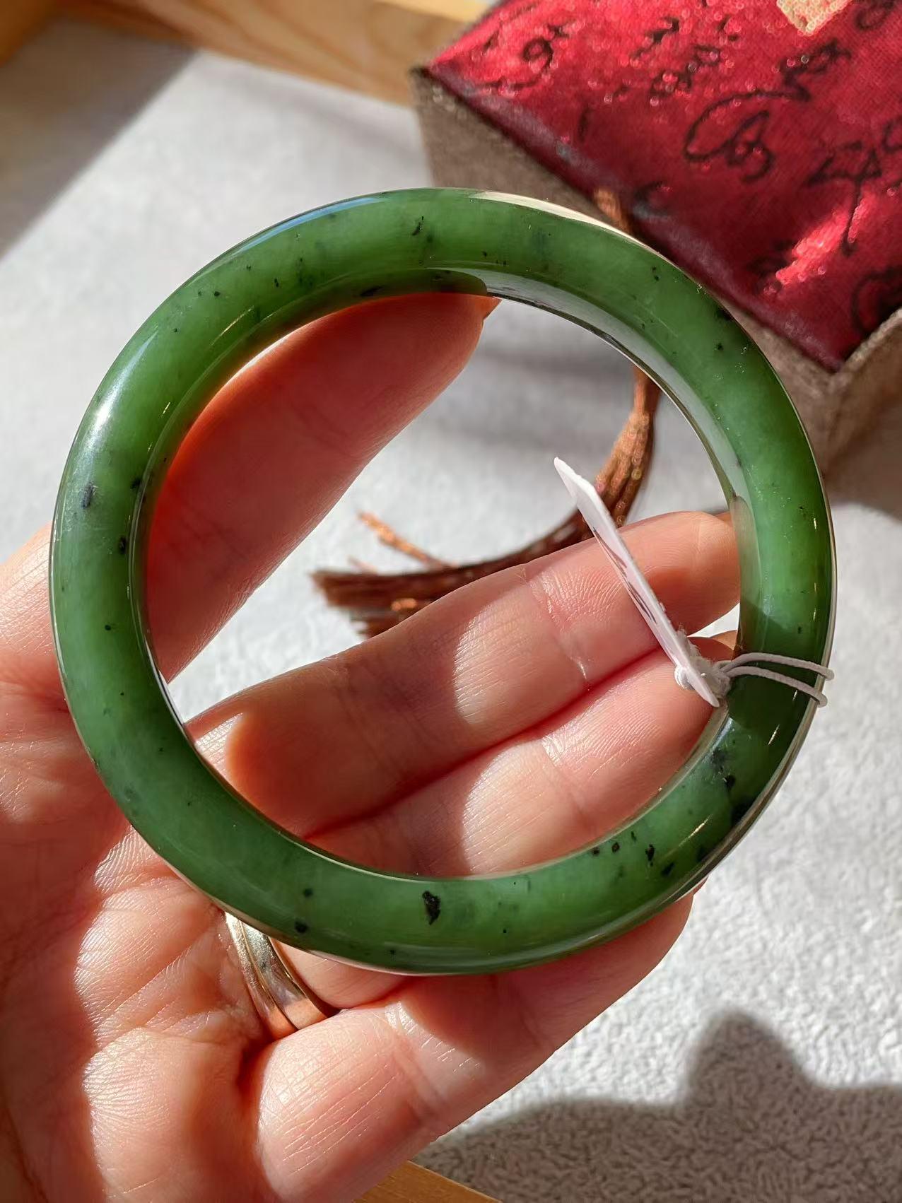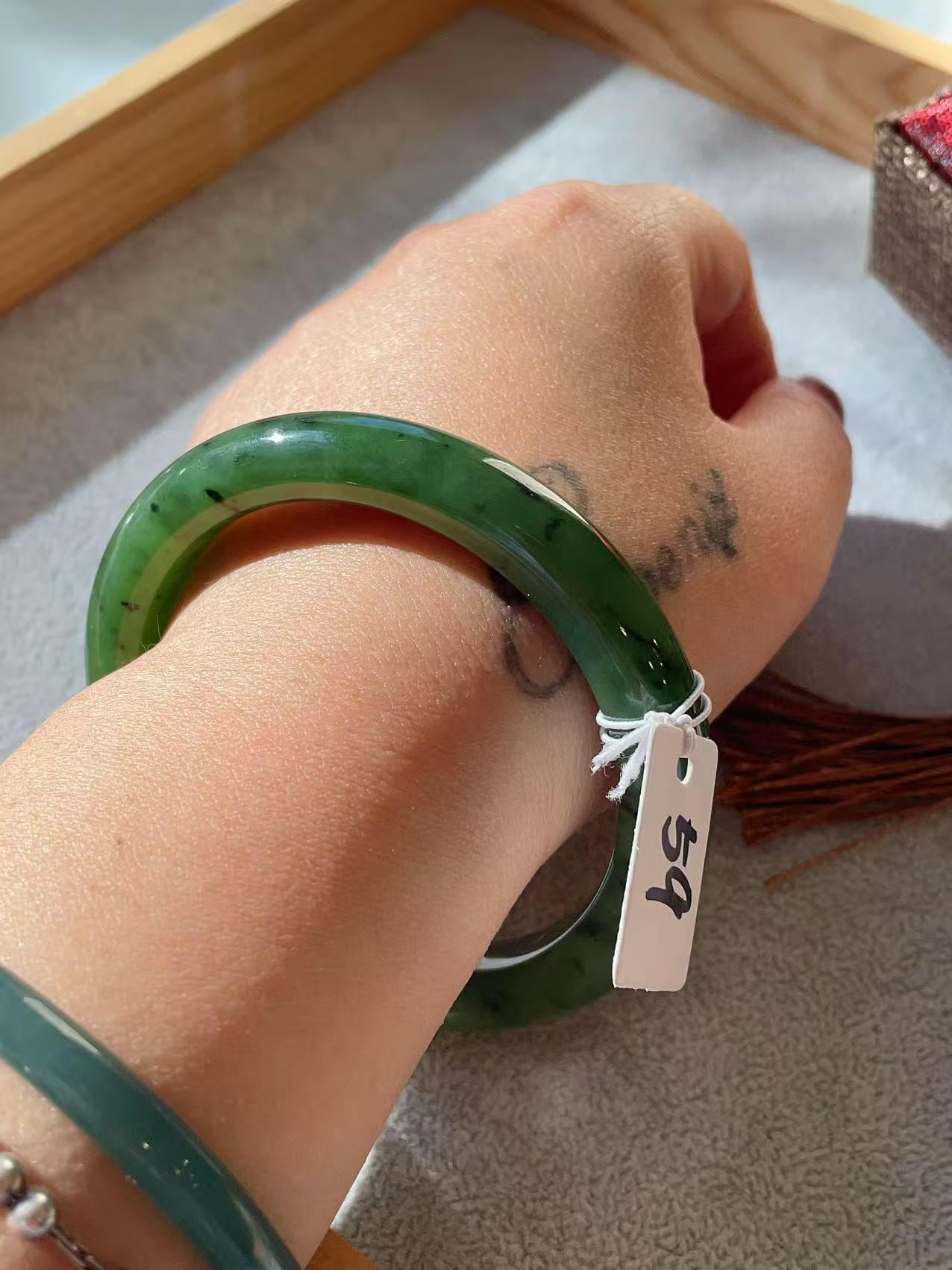 Certified Forest Green Jade Bangle: Natural Nephrite Green Jade Bracelet (59mm/60-61 Wearable), Green Jade Bangle