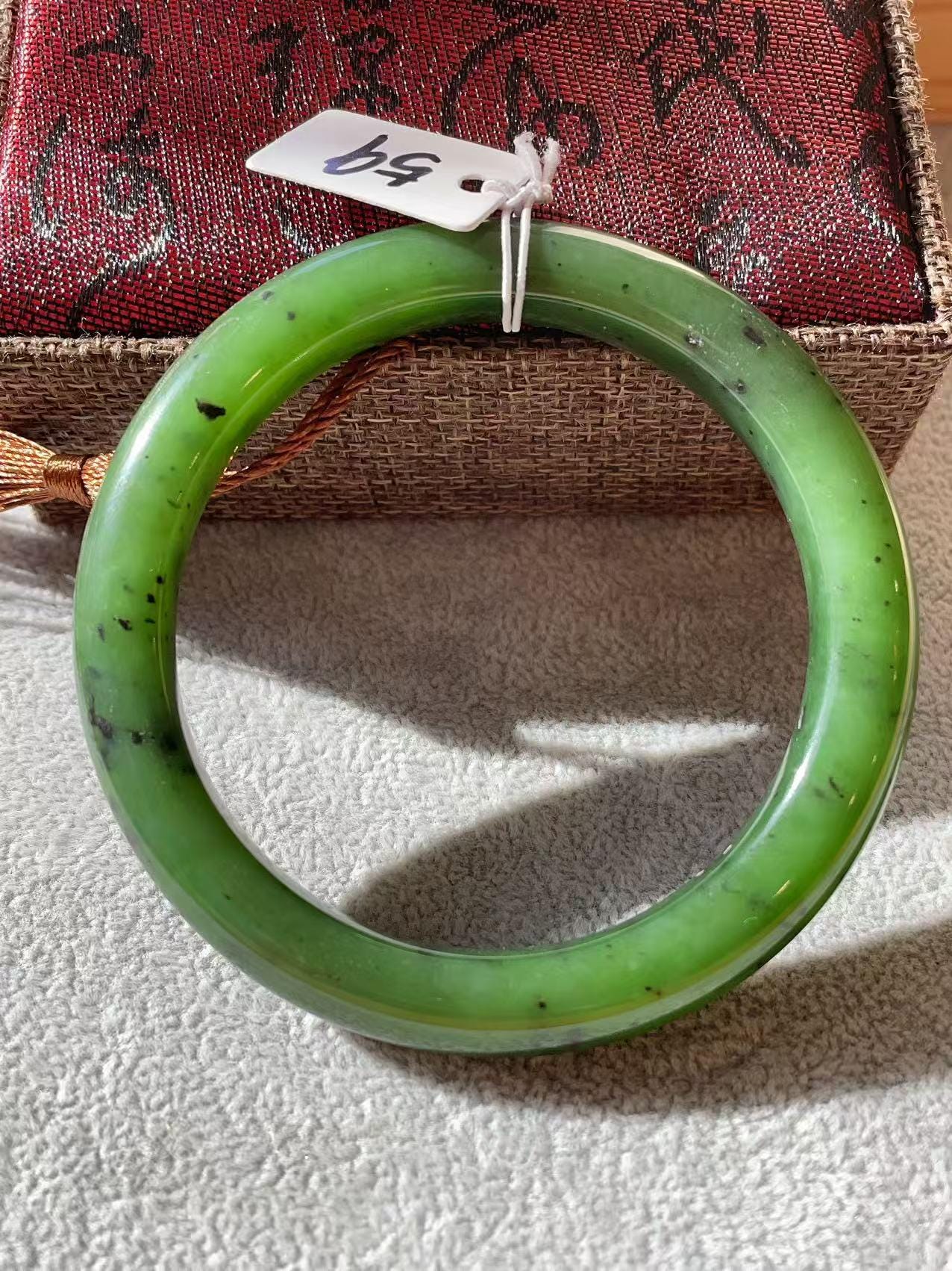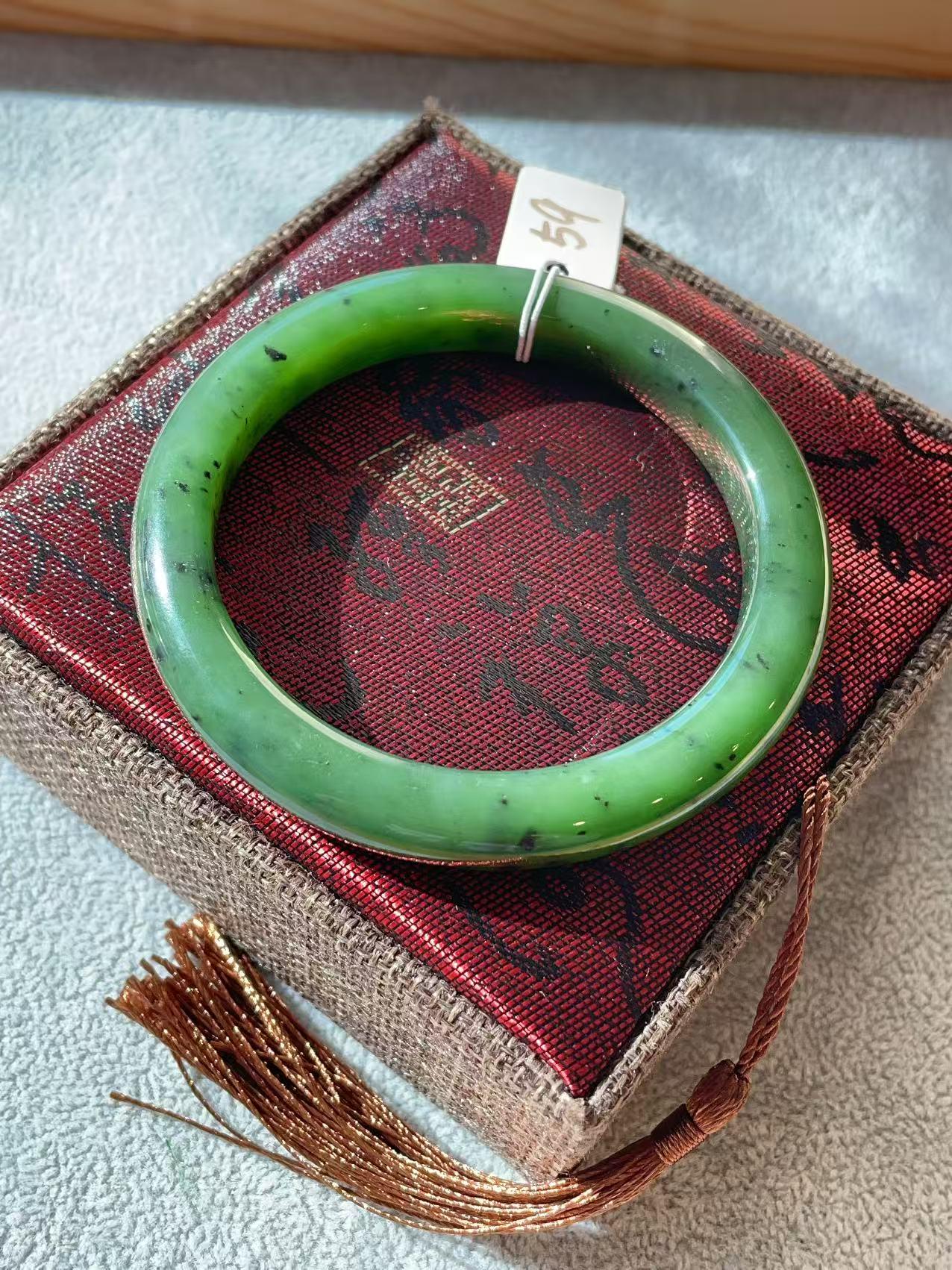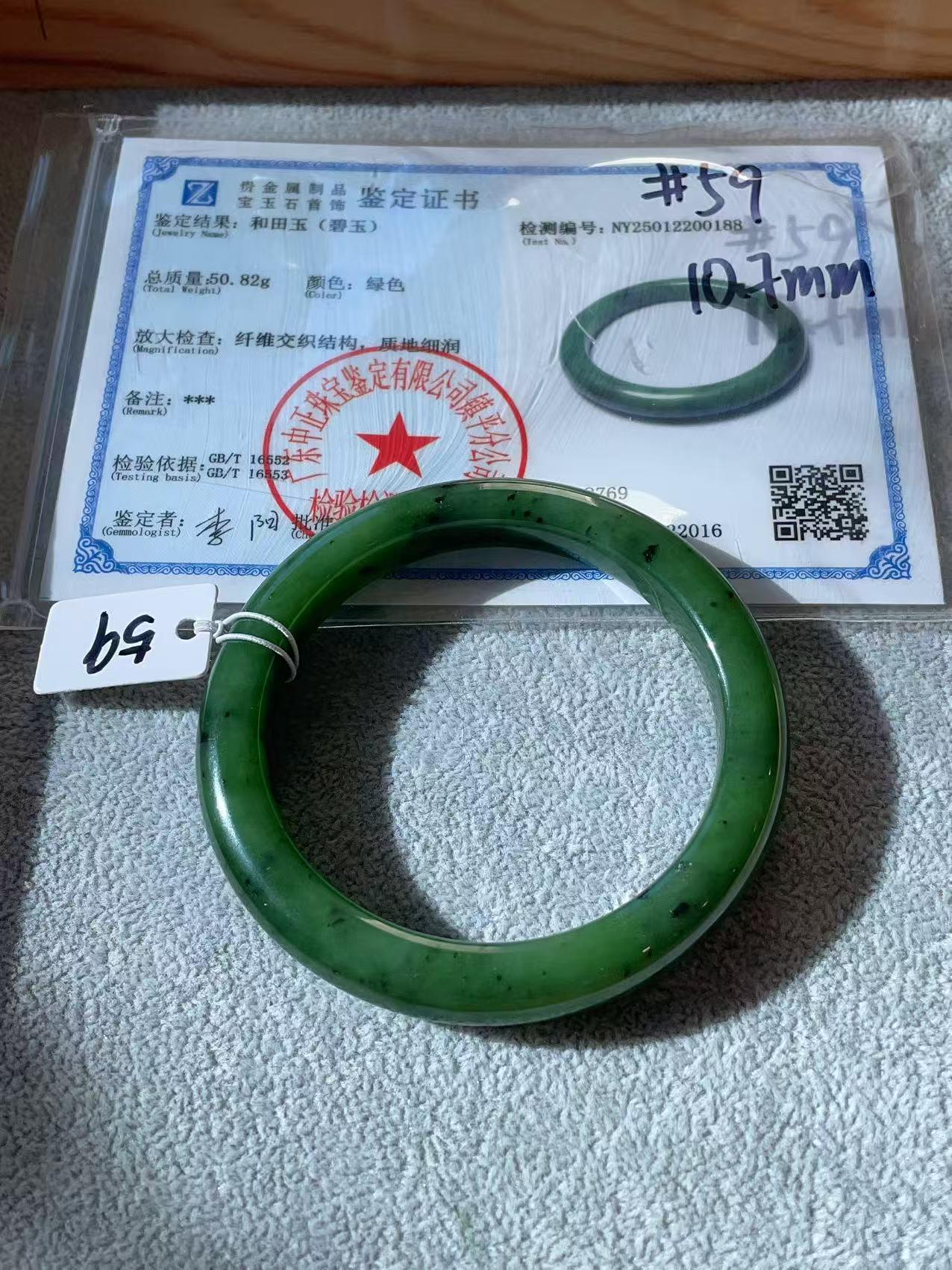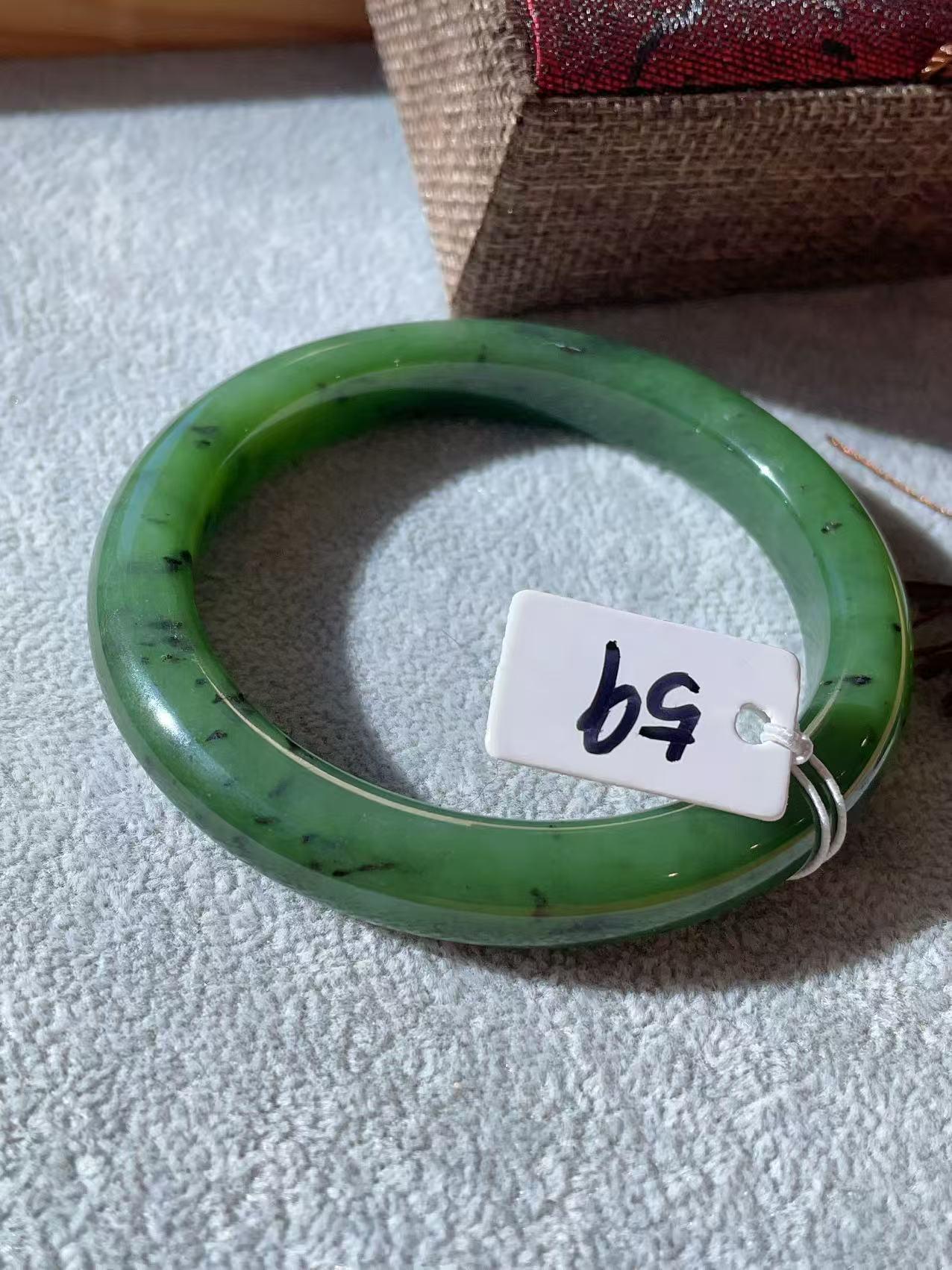 Certified Forest Green Jade Bangle: Natural Nephrite Green Jade Bracelet (59mm/60-61 Wearable), Green Jade Bangle