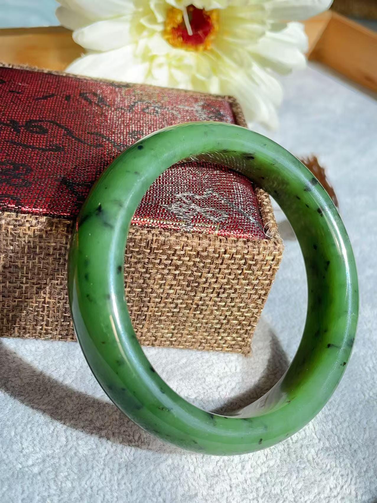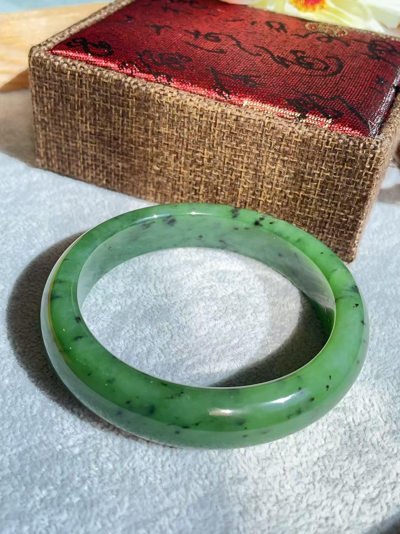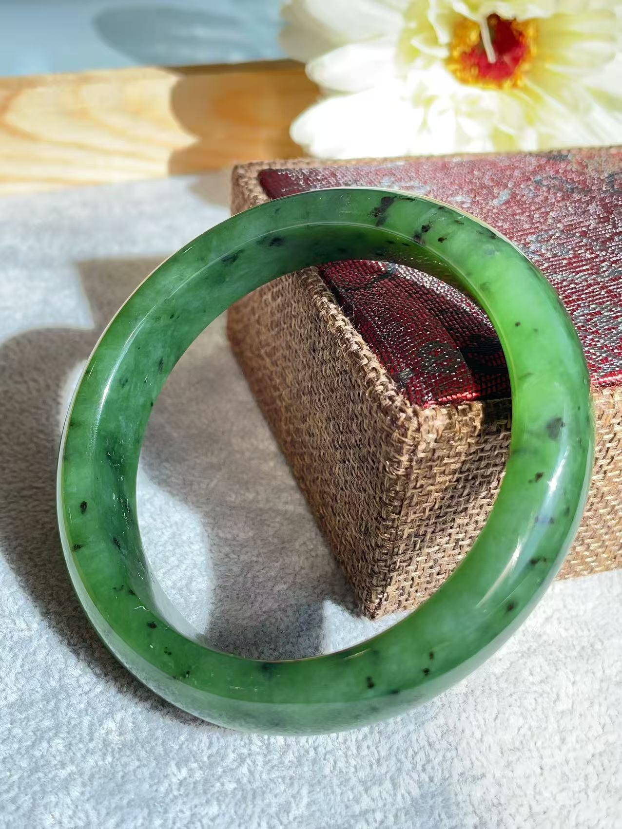 Certified Forest Green Jade Bangle: Natural Nephrite Green Jade Bracelet 57.6mm, Green Jade Bangle Bracelet