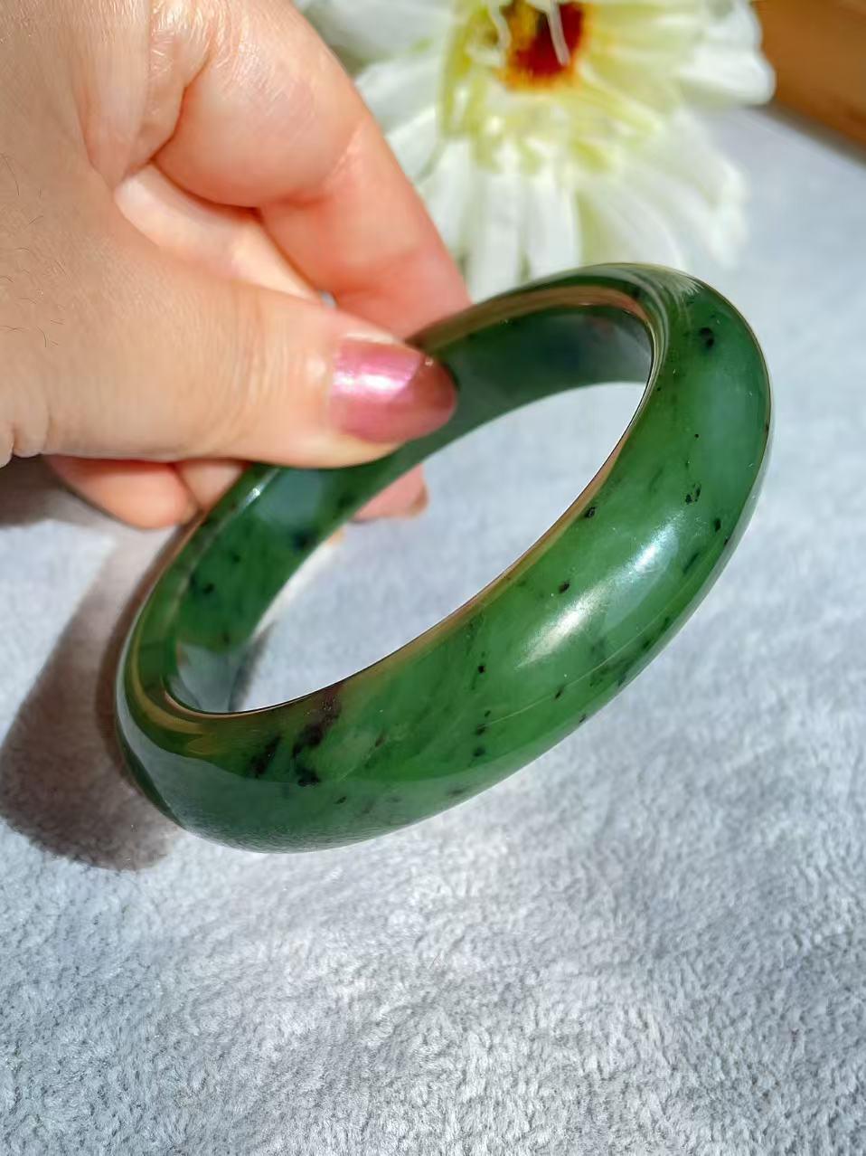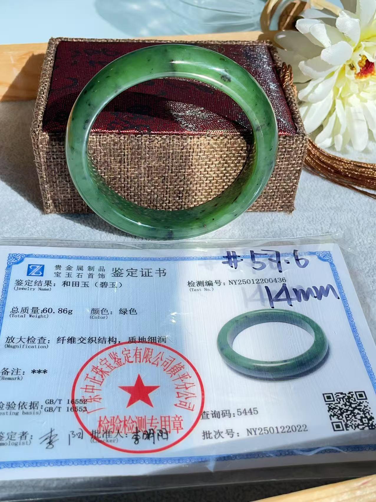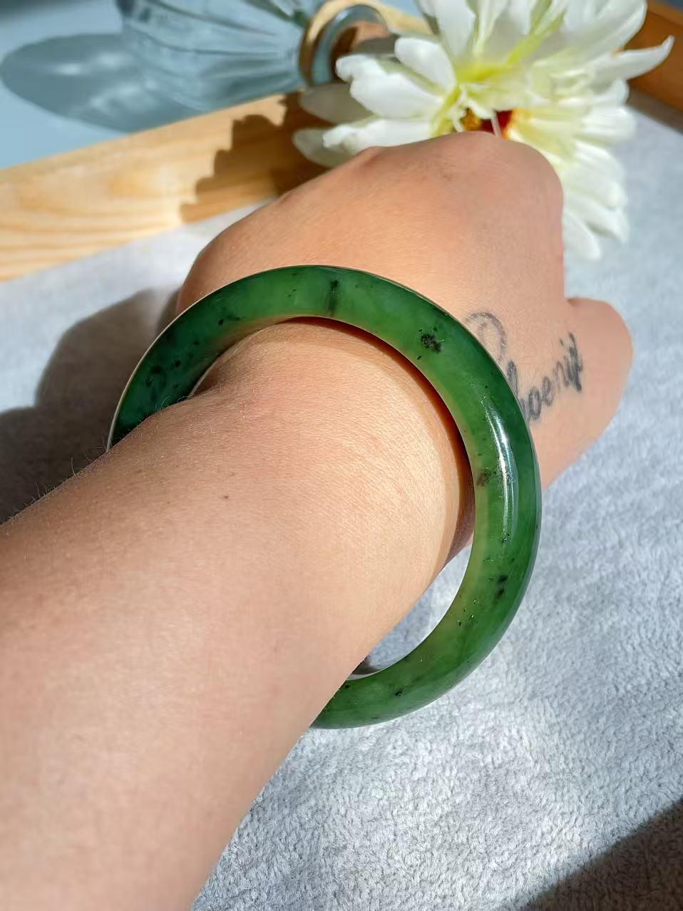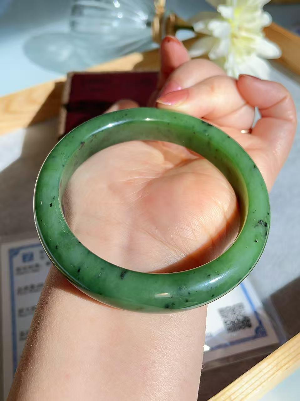 Certified Forest Green Jade Bangle: Natural Nephrite Green Jade Bracelet 57.6mm, Green Jade Bangle Bracelet