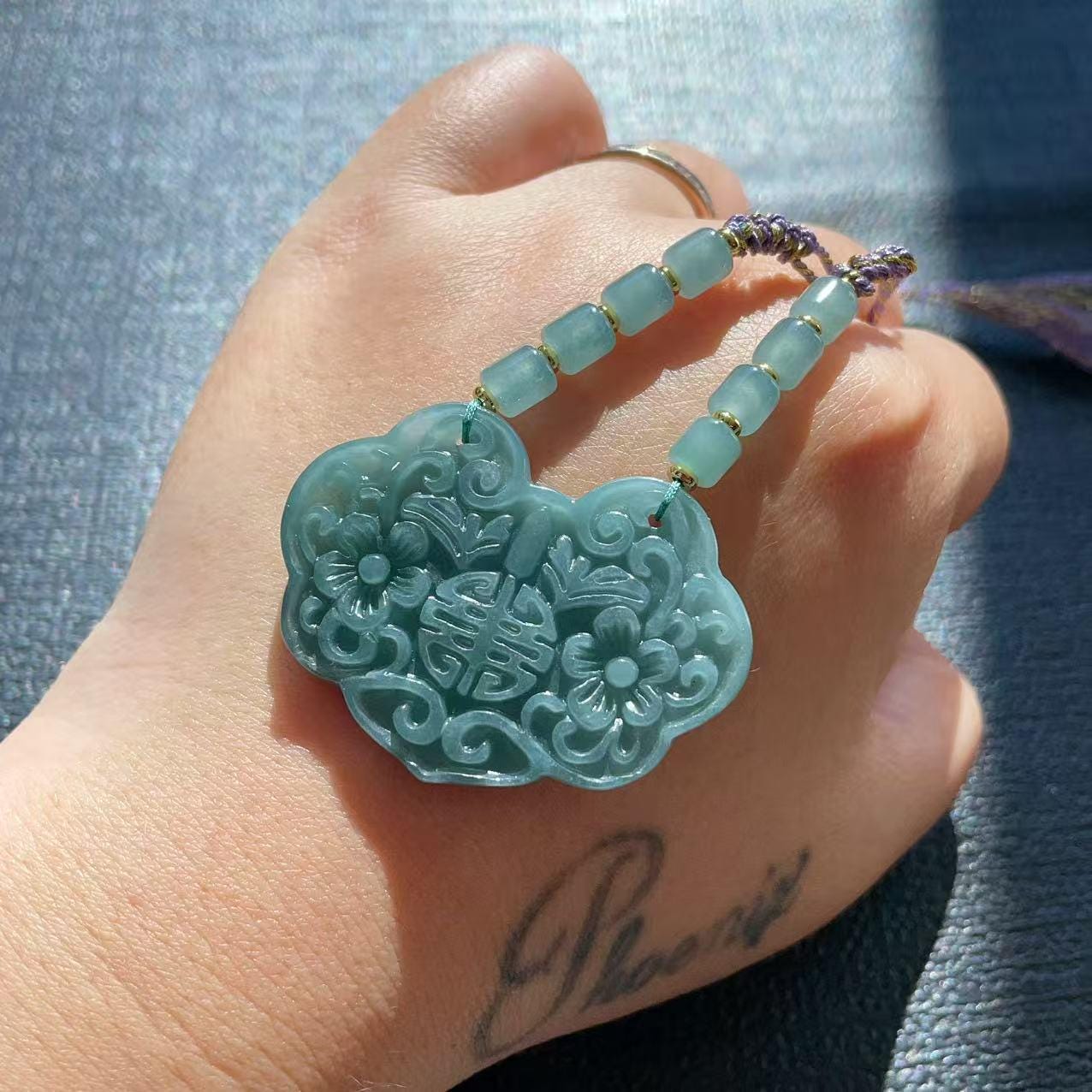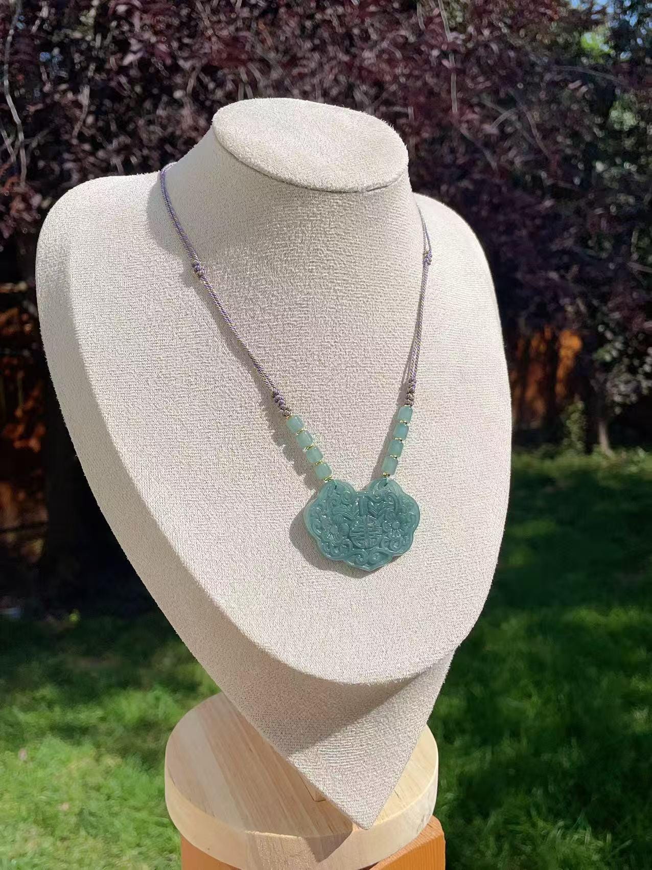 Natural Blue Water Jadeite: Peace Lock Pendant Necklace ,Adjustable Cord, Natural Jadeite, Handmade Pendent Necklace