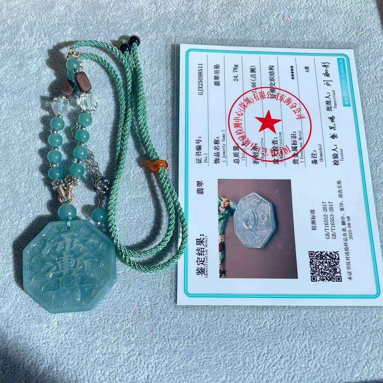 Certified Natural Blue Jadeite Tag Lucky Pendant Necklace, Hand-Carved Jade Jewelry, Certified Large Jadeite Pendent, Gift for Her