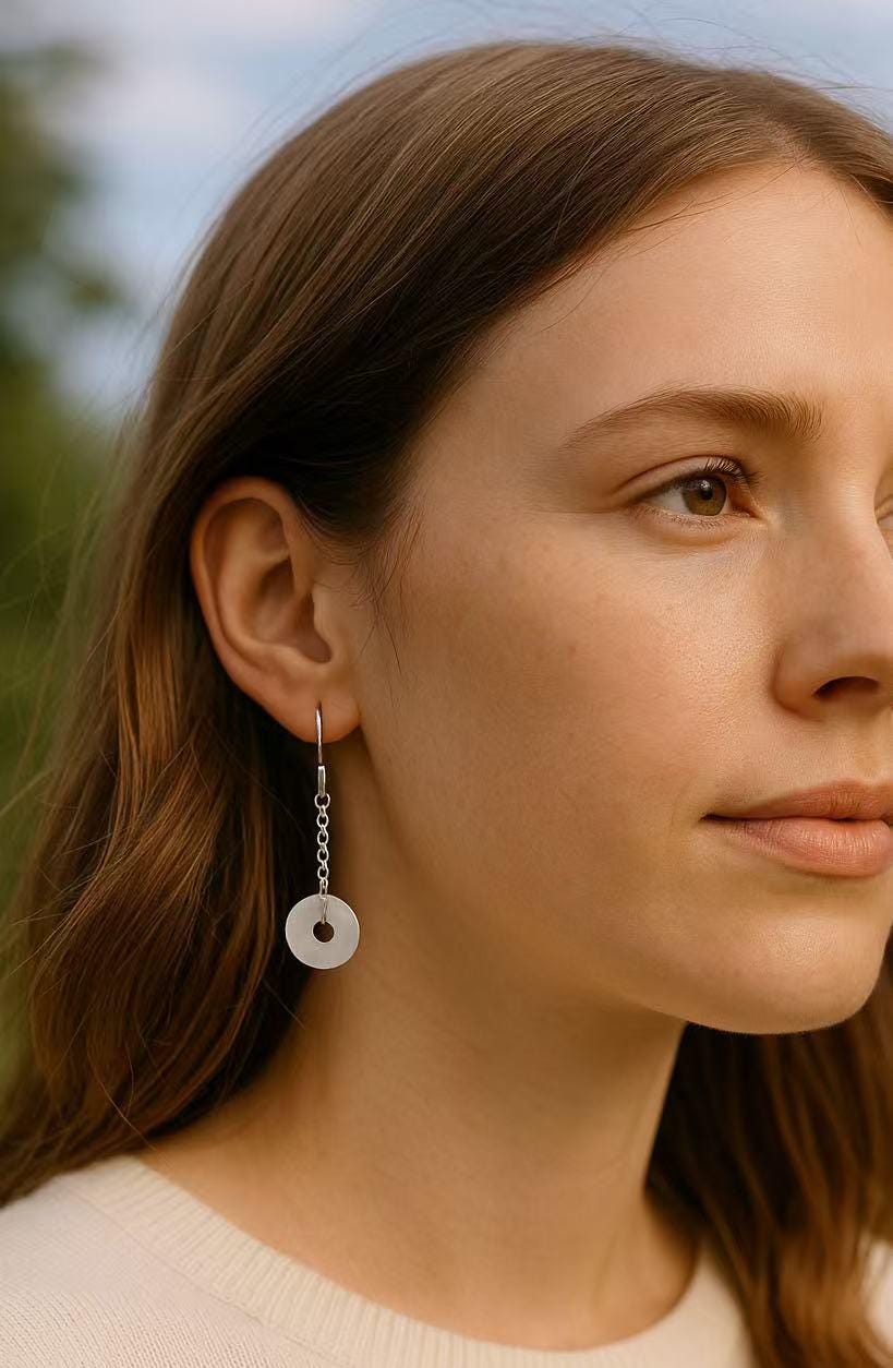 Each jade circle is hand-polished to a soft sheen and paired with delicate 925 sterling silver chains, giving it a graceful sway with every movement.